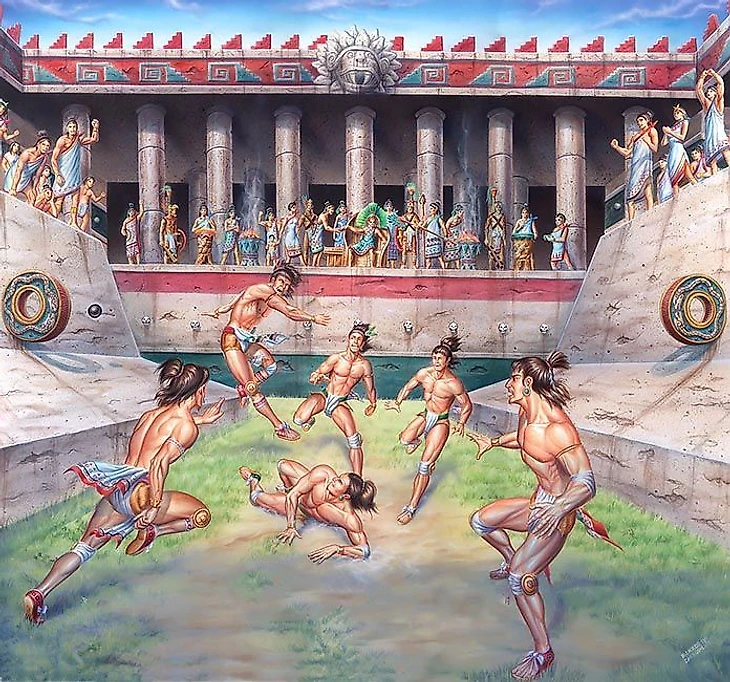 Несмотря на их использование в качестве театров для человеческих жертвоприношений, которые играли важную роль в мезоамериканской религии, часто путем извлечения живого сердца, калечения и обезглавливания, именно на этих площадках для игры в мяч (тлачтли) происходила самая известная разновидность игры в мяч. В улламалицтли, как было замечено испанскими конкистадорами в XVI веке, играли по всей империи ацтеков. В своих мемуарах «Ранние мемориалы» францисканец де Саагун попытался отразить суть этого своеобразного занятия: