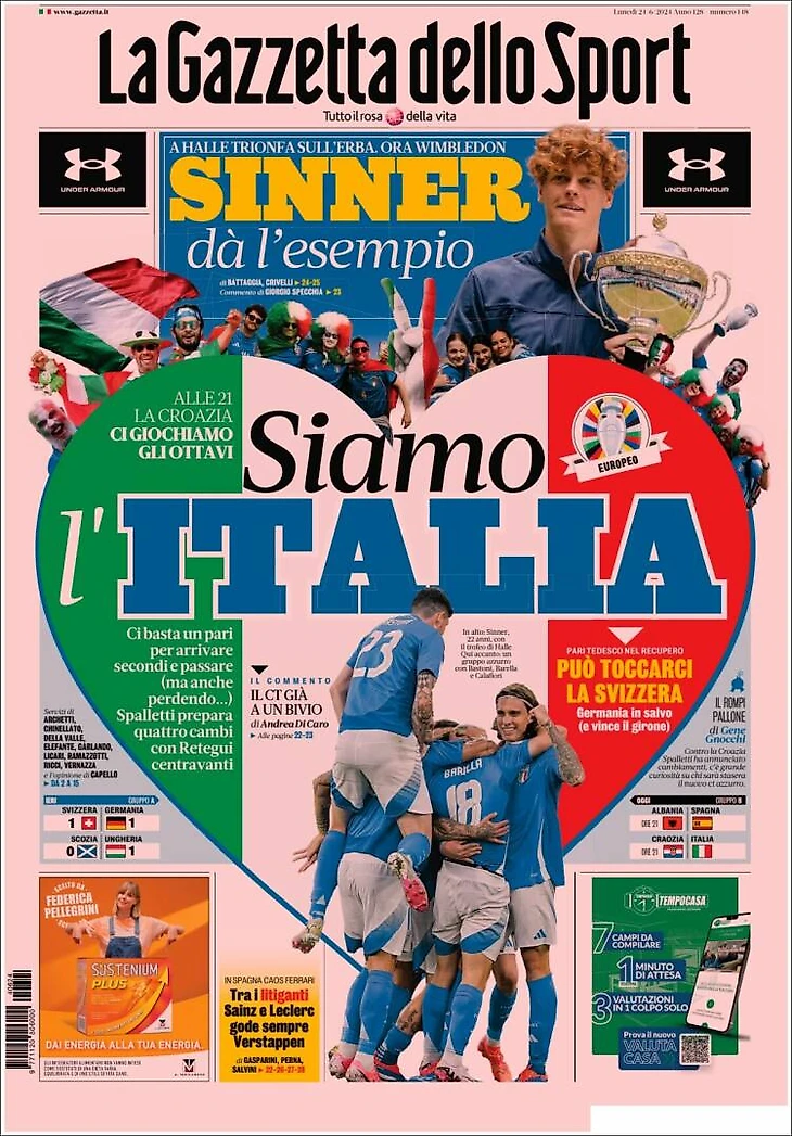 На обложке не только игроки и болельщики, но и Янник Синнер, который вчера выиграл титул – кстати, в немецком Галле.