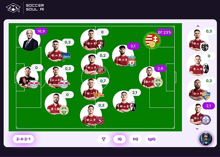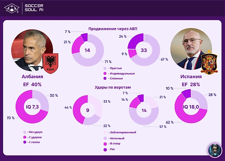 💡Soccer Soul EF (эффективность продвижения через АВП) – производная метрика, доля балов набранных за удары по воротам к общекомандному IQ.