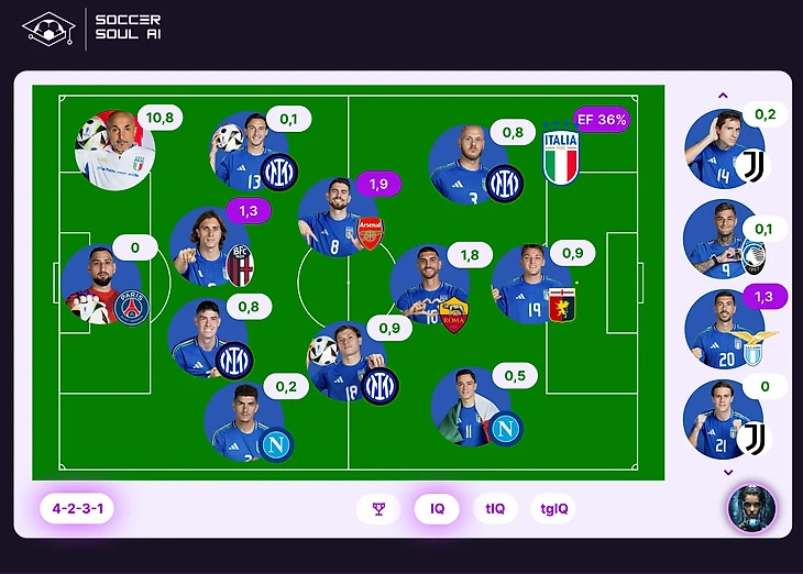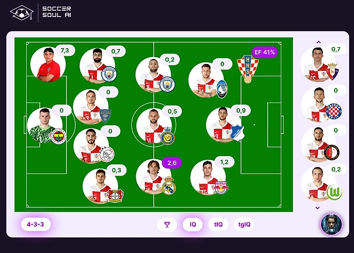 В решающем матче группового этапа роль первой скрипки взял на себя ветеран: Модрич - MVP поединка с 2,6 IQ. Показатель не космический, но это очередное подтверждение сложности прошедшего матча. Больше не набрал никто. Кроме того, для его игровой позиции это 162% выполнения норматива! Лучший у итальянцев – Жоржиньо (1,9 IQ). Ни тот, ни другой не являлись фаворитами своих команд в предыдущих играх. В решающих поединках, когда напряжение висит в воздухе и ноги ватные, своё веское слово говорят опорники!