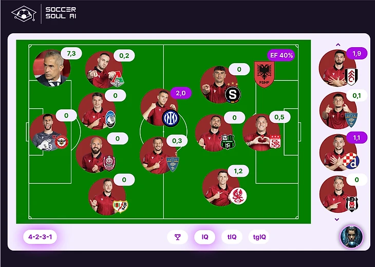 Лучший у албанцев, как и во всех матчах команды на Евро – Аслани (2,0 IQ)