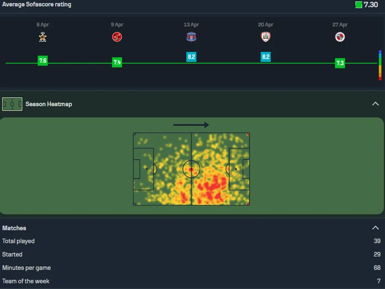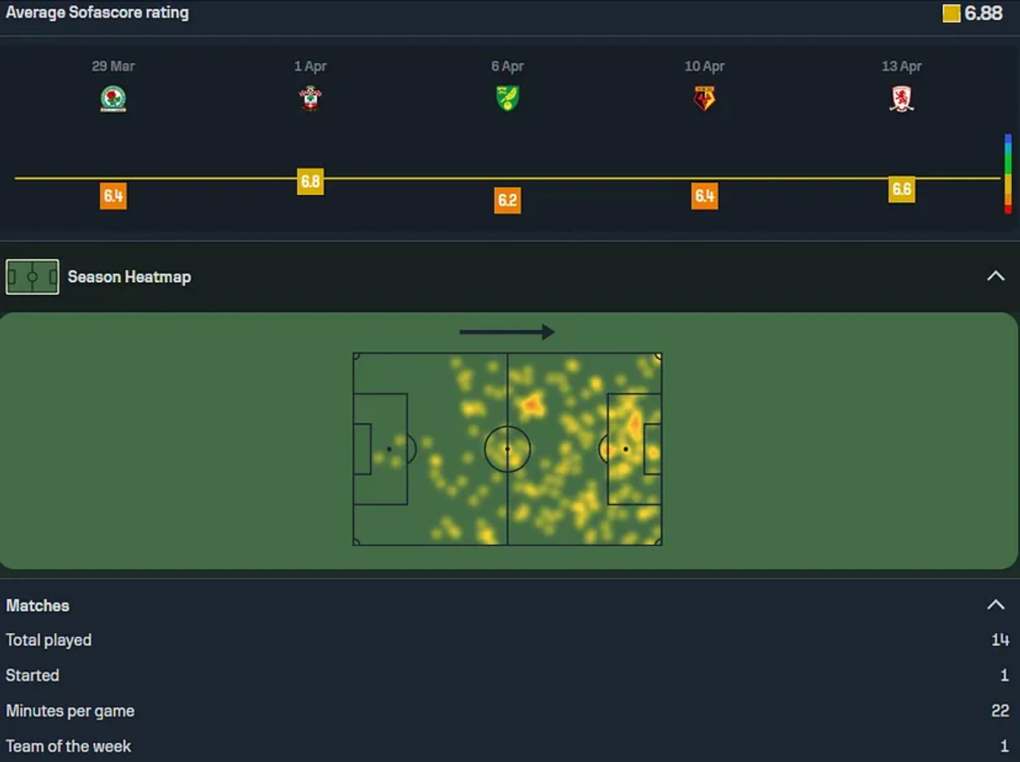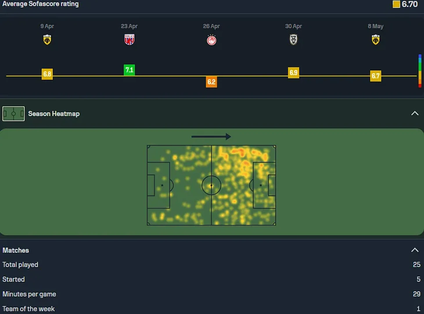 Камачо был связан с клубами Премьер-Лиги и Чемпионшипа с момента его возвращения в Спортинг, и это неудивительно, учитывая его многообещающую репутацию еще в подростковом возрасте, прежде чем ему пришлось пережить более тяжелые времена. В сезоне 22/23, когда он играл в греческом Арисе, он забил 4 гола менее чем за 10 выходов в старте. Он, возможно, нечасто выходил на поле, но на самом деле был прилично стабильным и снова продемонстрировал проблески своего потенциала.