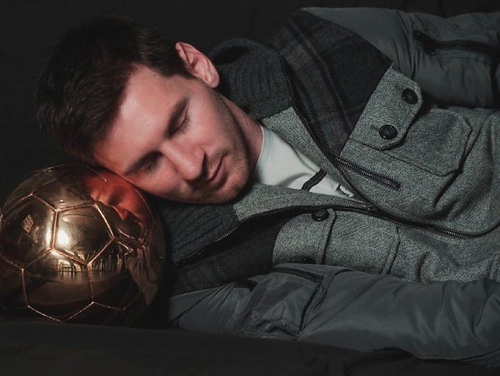 Лео Месси использует «Золотой мяч» как подушку. Судя по улыбке, его сны интереснее игр сборной Англии.