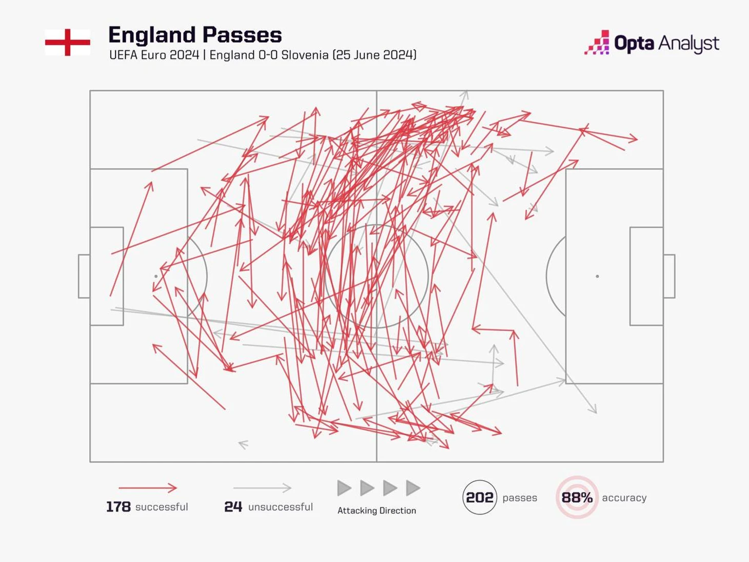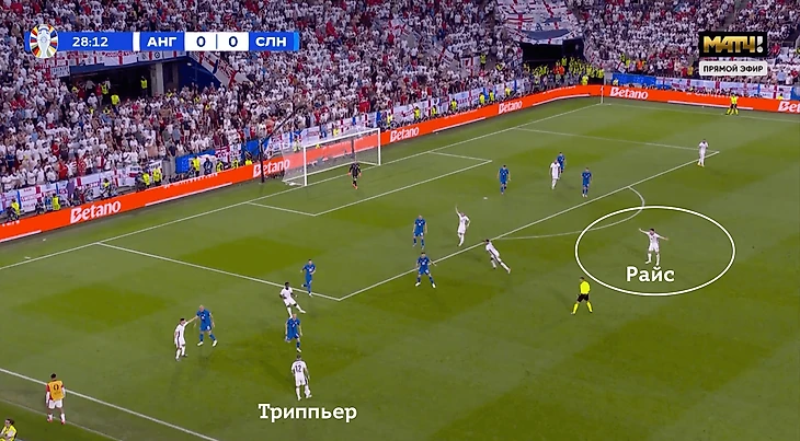 Деклан не соврал: в отличие от прошлых игр, Англия правда пыталась прессинговать. Самому Деклану досталась роль страхующего перед защитой, тогда как в давление шла атакующая пятерка. Главная проблема – Словения вообще не хотела в это играть. Даже не пытались разыгрывать и почти сразу выносили. Из 28 передач Яна Облака – сразу 21 лонгбол.
