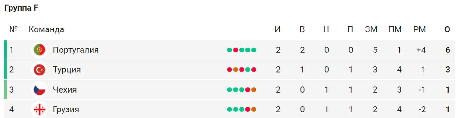 Победа оставляет грузин третьими с 4 очками или даже вторыми, если чехи обыграют турок, но окажутся хуже по доп показателям. Например, Грузия выиграет 3:1, а чехи 1:0