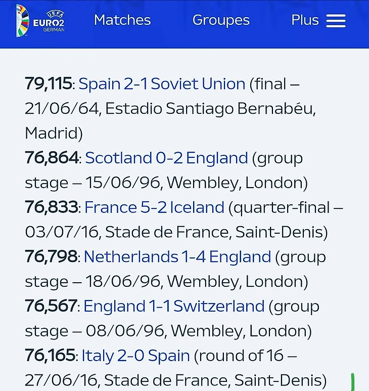 Удивительно, но тем самым был побит рекорд чемпионатов Европы по посещаемости. Пало, между прочим, достижение сборных СССР и Испании, которые в 1964 на «Сантьяго Бернабеу» собрали 79 тысяч 115 зрителей. Испанцы в том матче были сильнее 2:1.