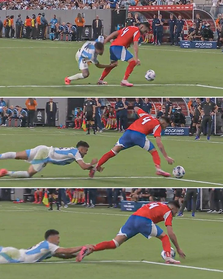 Удивительное судейство на Кубке Америки: Нико Гонсалес руками (!!!) пытался «оторвать» ногу сопернику, но не получил даже желтой