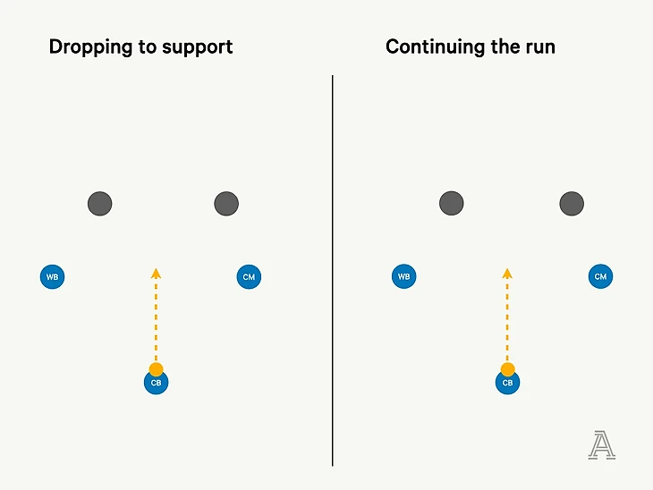 Это головная боль для центральных защитников, которые хотели бы продолжить движение вперед – они могут попытаться внести свой вклад в атаку, но какой бы полузащитник ни должен был занять их позицию сзади страхуя, он не сможет дать такой же объем и качество оборонительных действий.