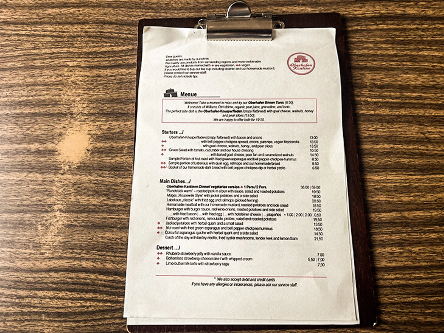 Окей, версия соответствует всему, что я прочитала. Заказываю Rundstück Warm – стоит 19.5 евро, как и его сосед по меню.