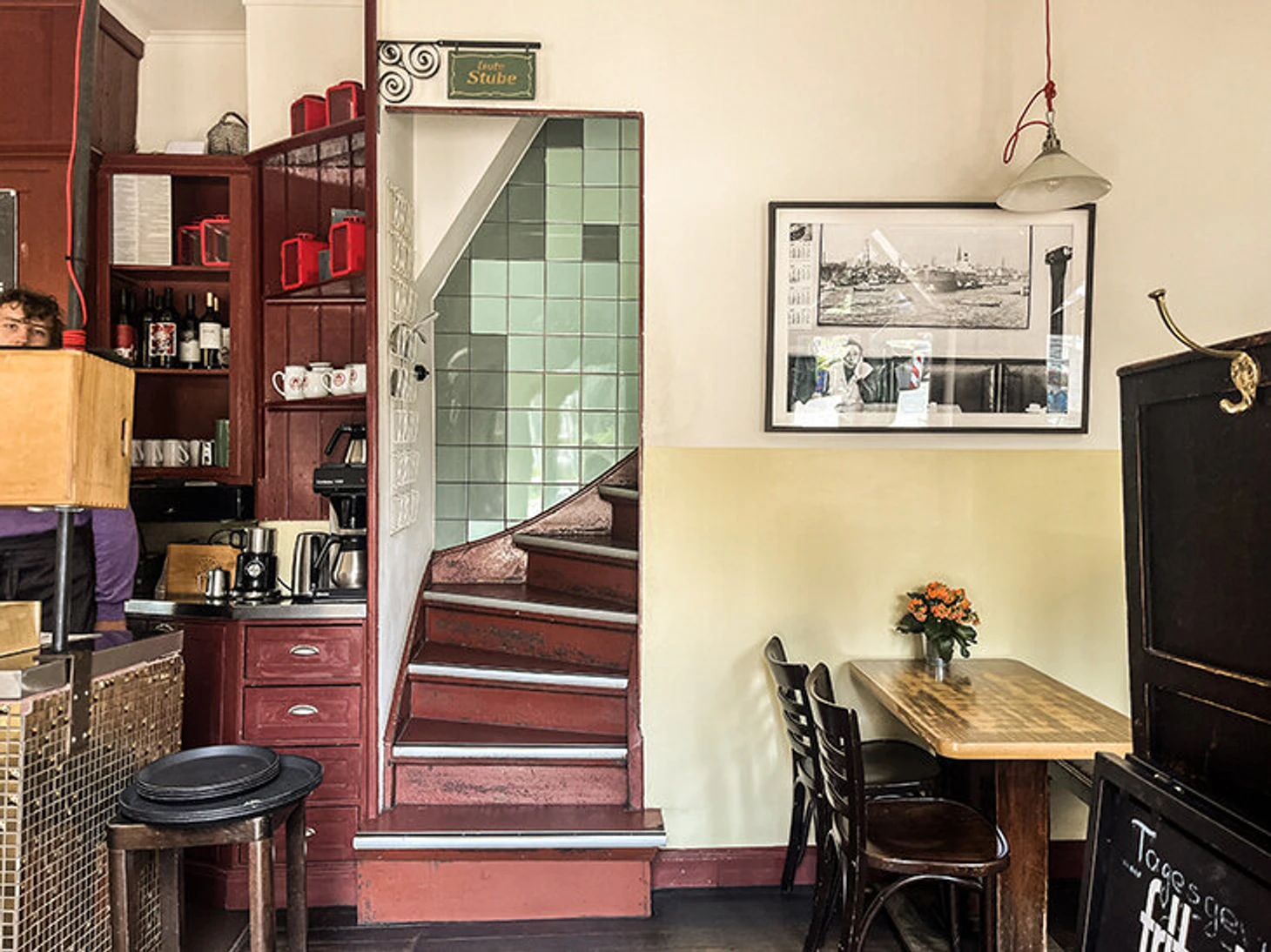 Избушка, в которой она расположена, построена еще в 1925 году за счет владельца столовой Херманна Шпарра. Мимо столовой в доки ходили рабочие – там они брали кофе, сэндвичи с сосисками и картофельный салат. Здание пережило Вторую мировую войну, но в мае 1997-го оказалось на грани: накренилось из-за эрозии почвы (стоит прямо на обрыве) и штормов. Казалось, от сноса его уже ничто не спасет, но в 2000-м руководство Гамбурга неожиданно признало здание памятником архитектуры. Два года спустя житель города Клаусмартин Кречмер купил полуразрушенный домик, а в 2005-м началась масштабная реконструкция.