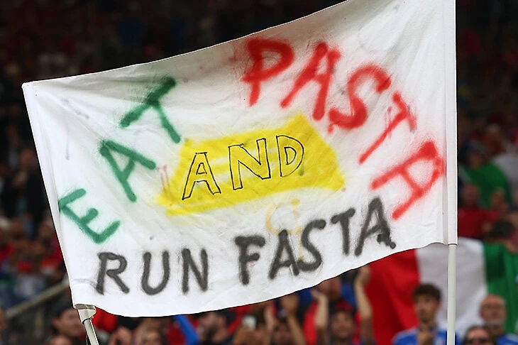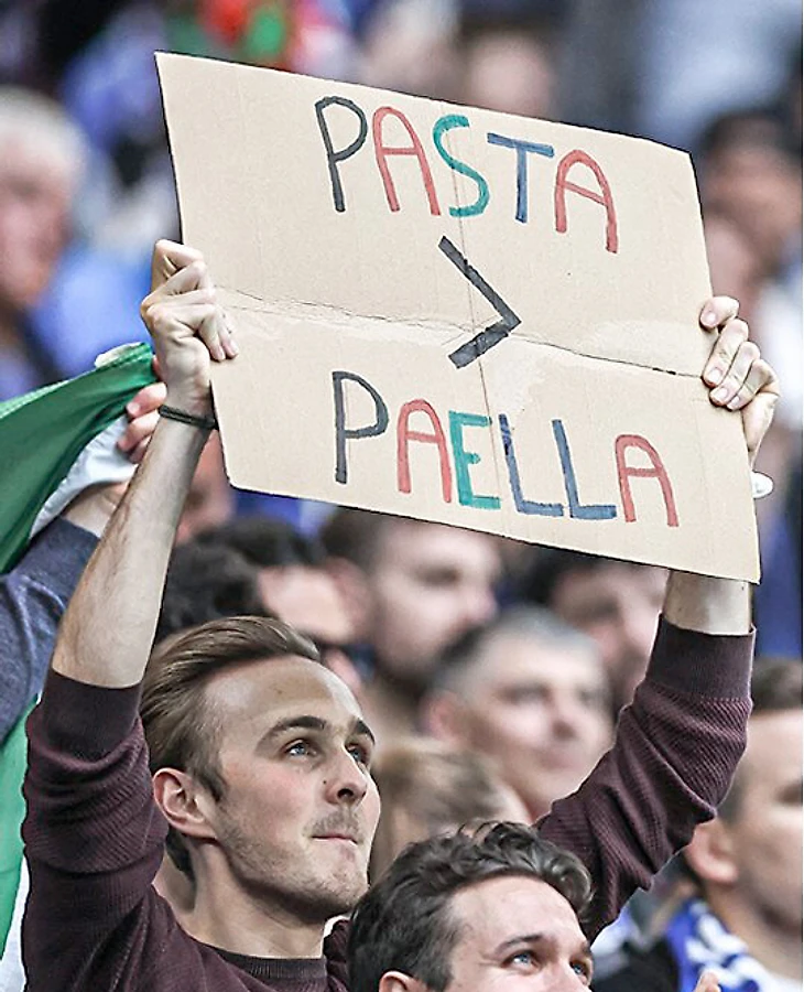 И началось. «Паста лучше паэльи» на матче Италия – Испания.