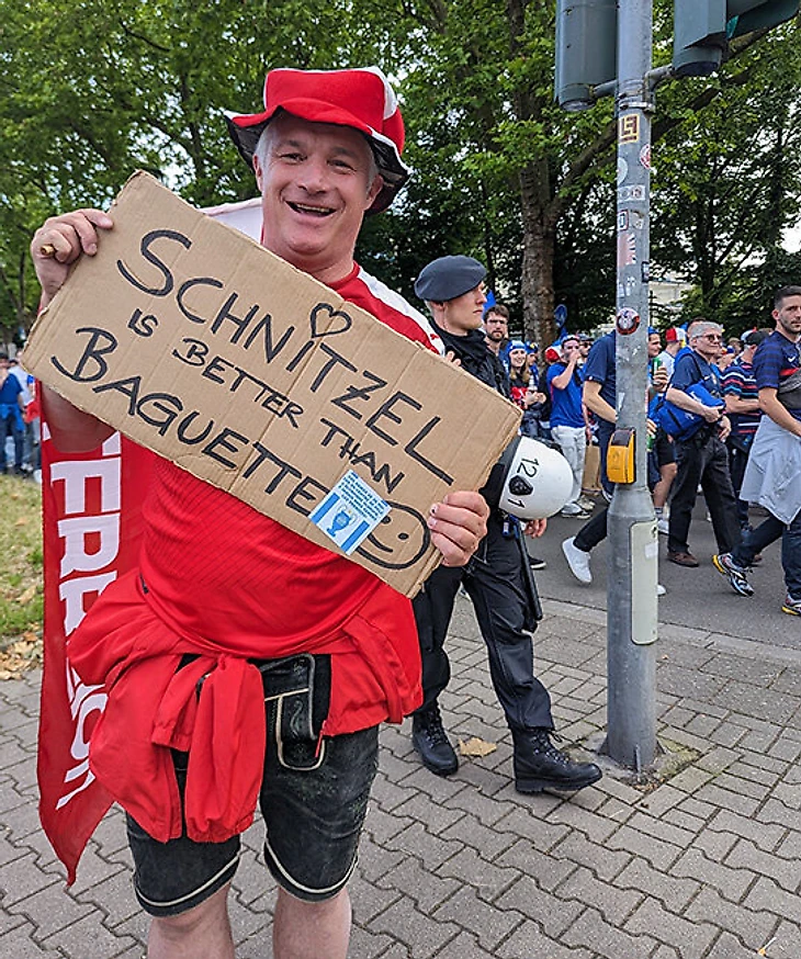 А кто-то не сговариваясь, приносил два одинаковых баннера. «Шницель лучше багета» на матче Австрия – Франция от альпийцев.