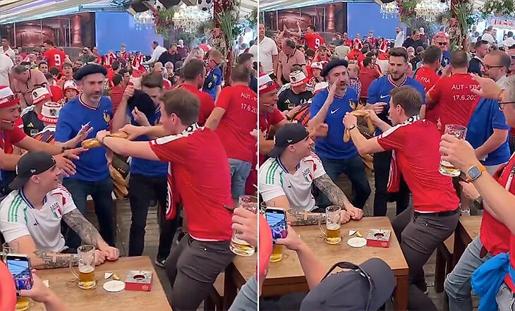 А затем и австрийский фанат продолжил шутку, сломав багет на глазах у французских болельщиков.