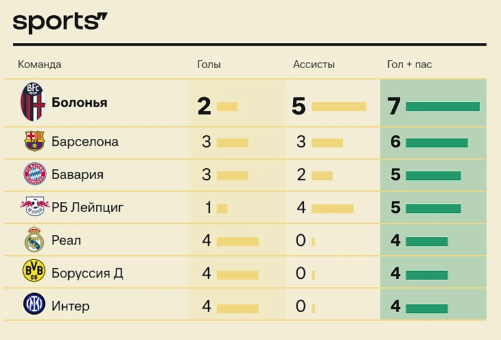 На групповой стадии Евро болонцы выдали 7 результативных действий – больше всех, включая «Реал» и «Баварию».