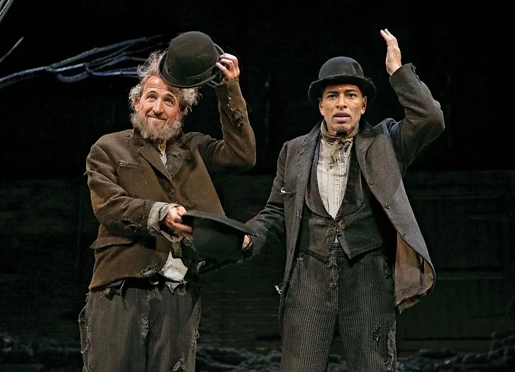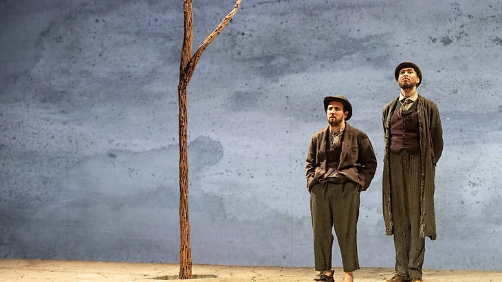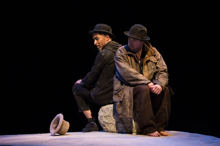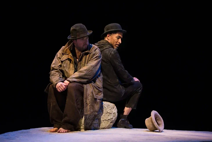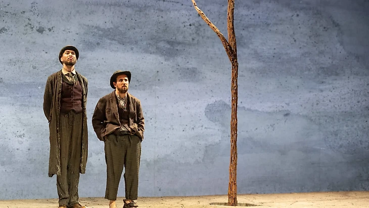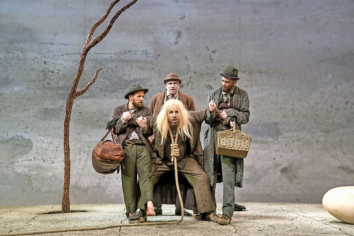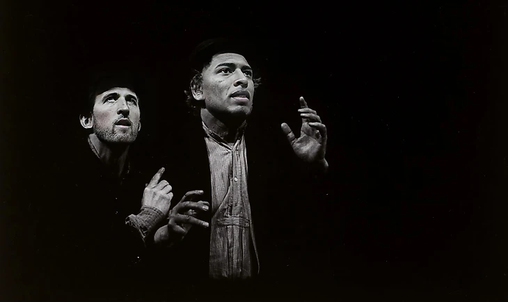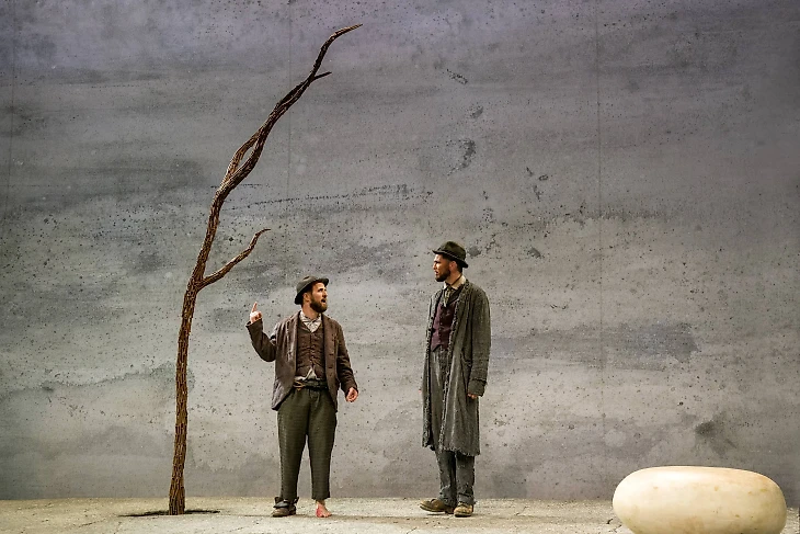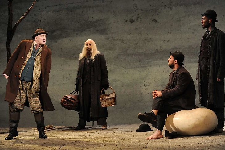 Харри поднимается с земли и встает у штанги. Джуд занимает его место в глубине сцены. Харри возвращается в глубину сцены и садится рядом с Джудом. Оба одновременно встают и идут к штанге. Джуд идет вперед на край сцены. Харри идет в глубину. Оба удалены от штанги. Все происходит быстро. Но шагом.