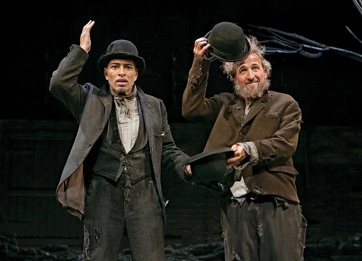 Харри: Давай ты встанешь здесь (ведет Джуда к левой кулисе, спиной к сцене и штанге). А я встану там (идет к правой кулисе и встает спиной к Джуду и штанге). Спина к спине (смотрят друг другу через плечо). Видишь варианты для атаки?