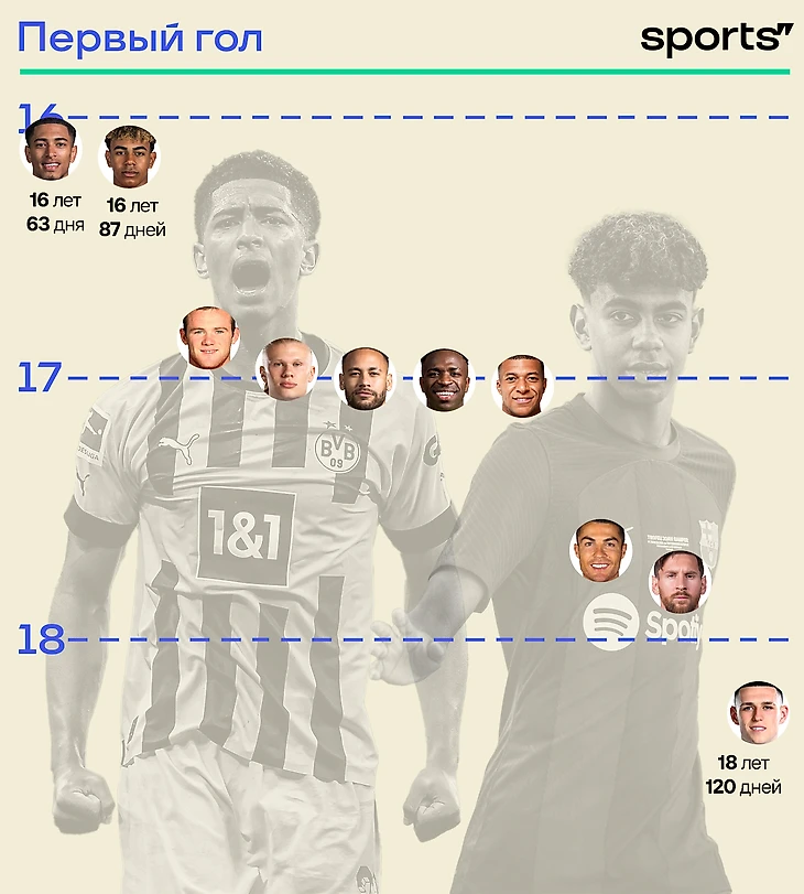 Если считать только основу и клубы топ-5 лиг, то у Ямаля нет конкурентов: Холанд и Беллингем начинали не в «Боруссии».