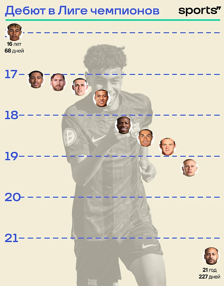 А вот самый молодой гол в ЛЧ Ямалю уже не покорится: Ансу Фати забил в 17 лет и 40 дней – до старта ЛЧ-2024/25 Ламин будет уже старше.
