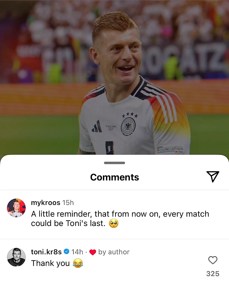 Фанат в комментариях напомнил, что каждый матч Крооса может стать последним. Тони отреагировал