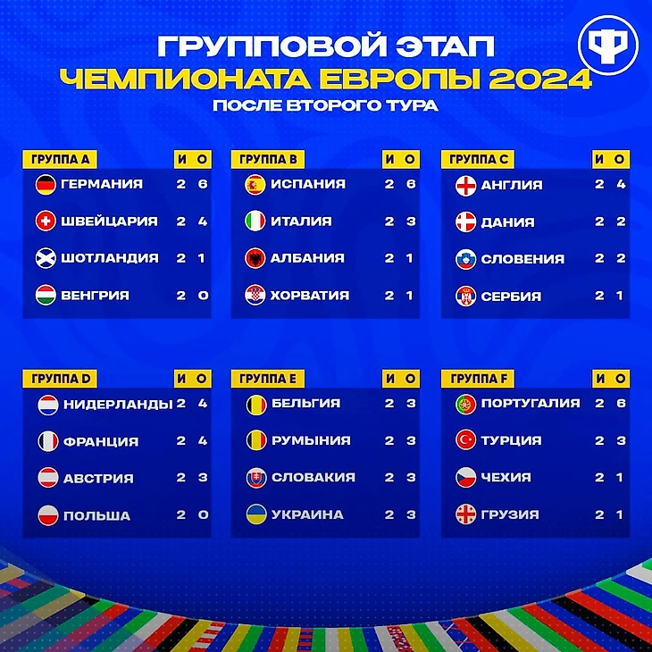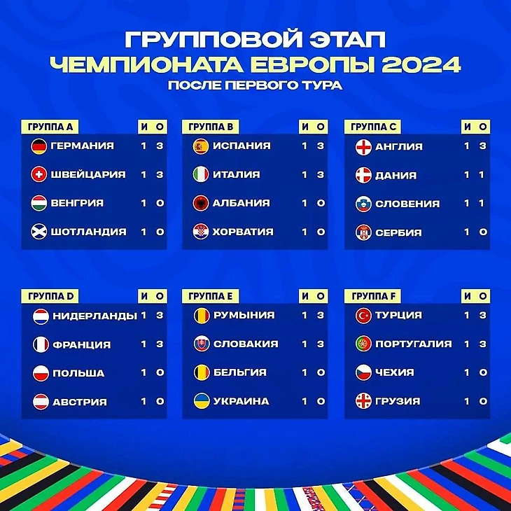 Групповой этап Евро - 2024 закончился и уже сегодня стартует плей - офф, так что самое время разобрать групповой этап. За эти две недели постоянного футбола мы увидели очень много интересного и запоминающегося, из за этого не получится упомянуть все. Но я постараюсь разделить эту статью на рубрики, а именно: