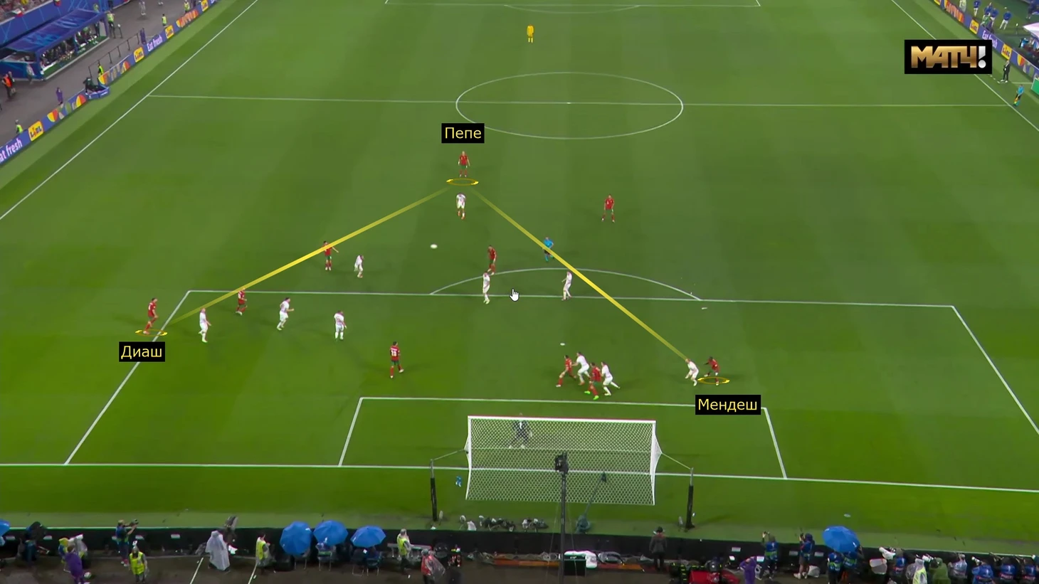 В первой голевой атаке Пепе вообще располагался в опорной зоне, контролируя центрального нападающего Хитила: Диаш разыгрывал в полуфланге, а Мендеш бил перед автоголом Гранача.