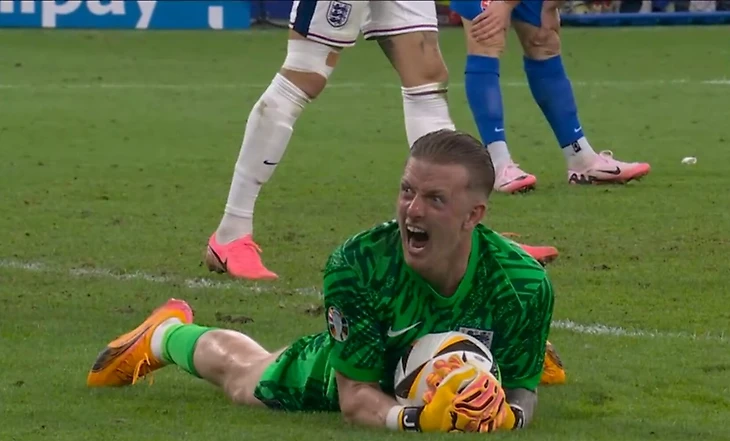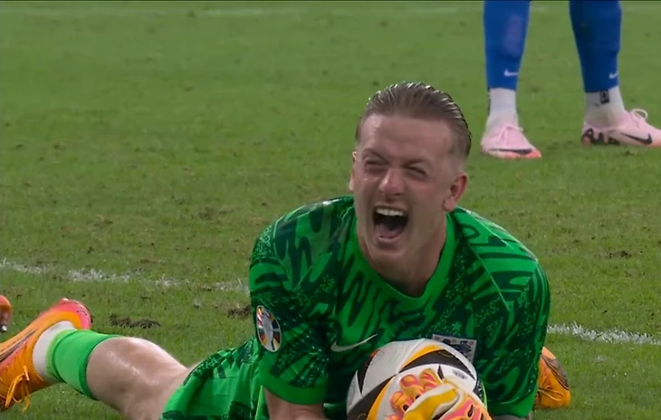 Все облегчение сборной Англии после страдальческого и перевернутого матча 1/8 финала со Словакией – в этой эмоции Джордана Пикфорда.