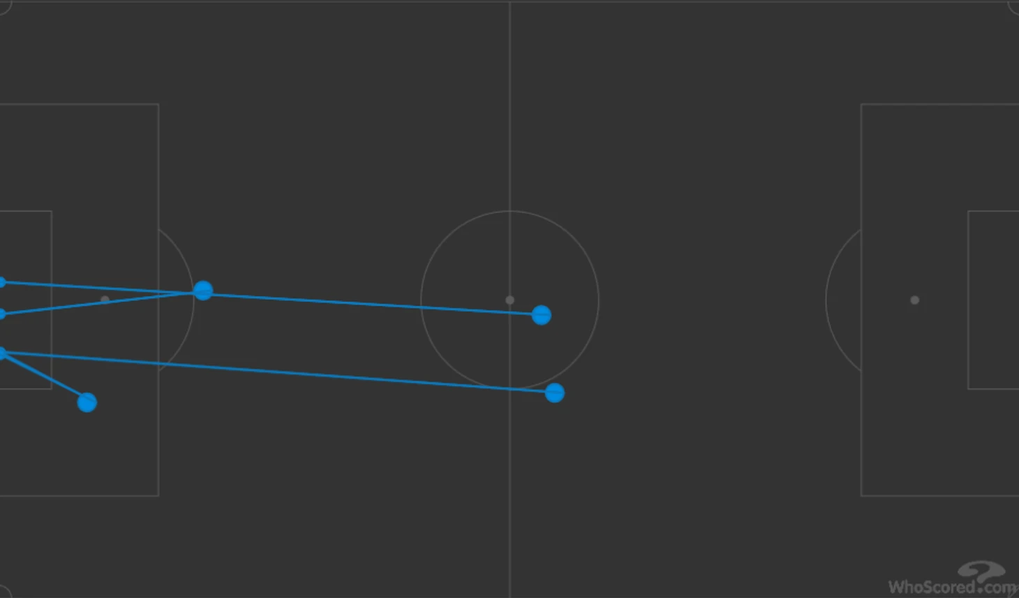2. Тройка полузащитников вжималась в штрафную/не покрывала ширину/была уязвима к переводам с края на край. В итоге регулярная игра между линиями, манипулирование шириной, постоянный контроль над штрафной.