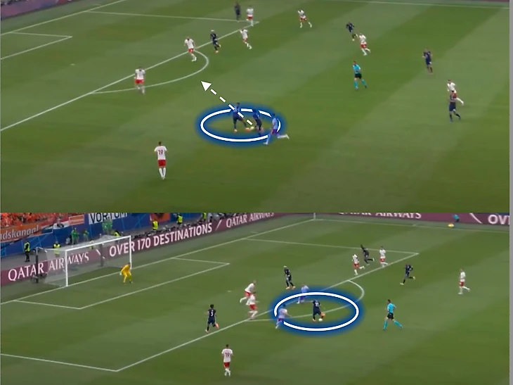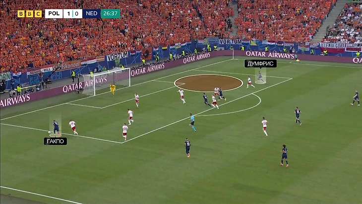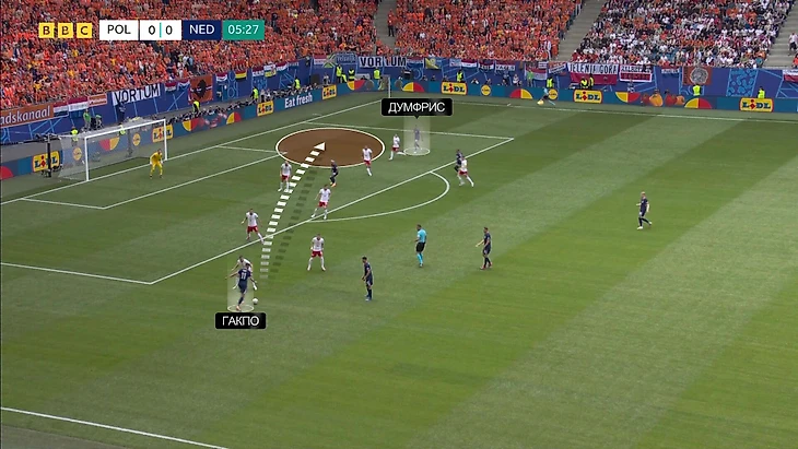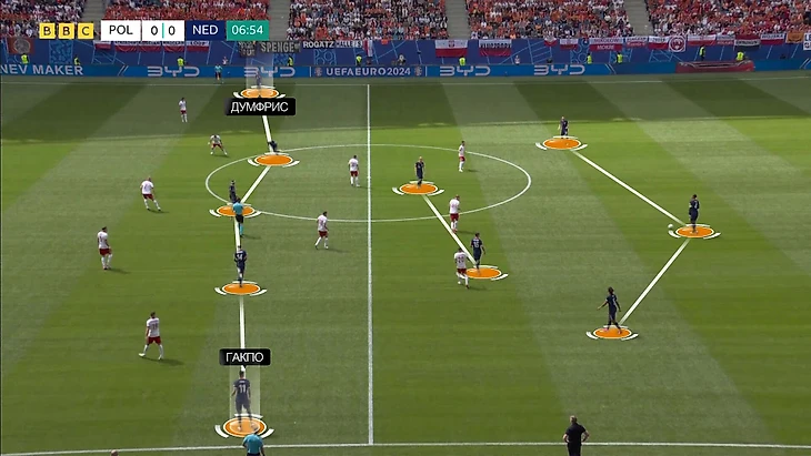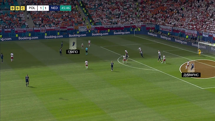 В матче против Польши, где нужно было взламывать закрытого соперника, этот прием стал главным для Нидерландов. Позиции по ширине в структуре команды занимали Гакпо и Думфрис: