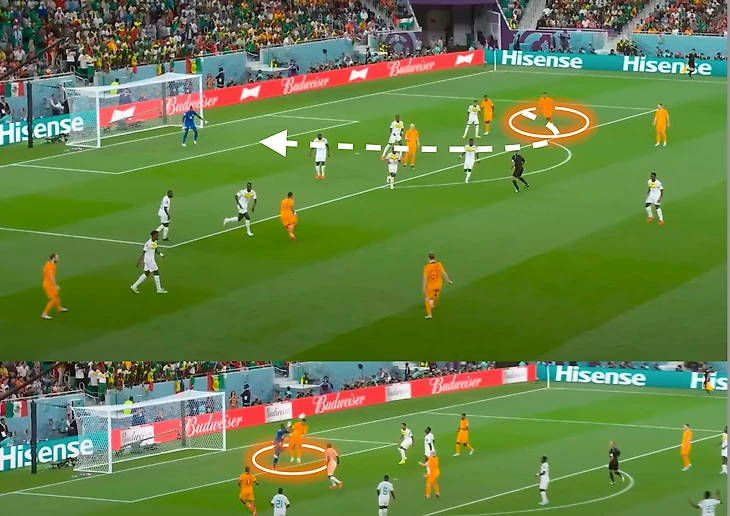 Защитники сборной Сенегала вообще не заметили Гакпо. Пересмотрев гол, можно убедиться, что на голландца даже не взглянули.