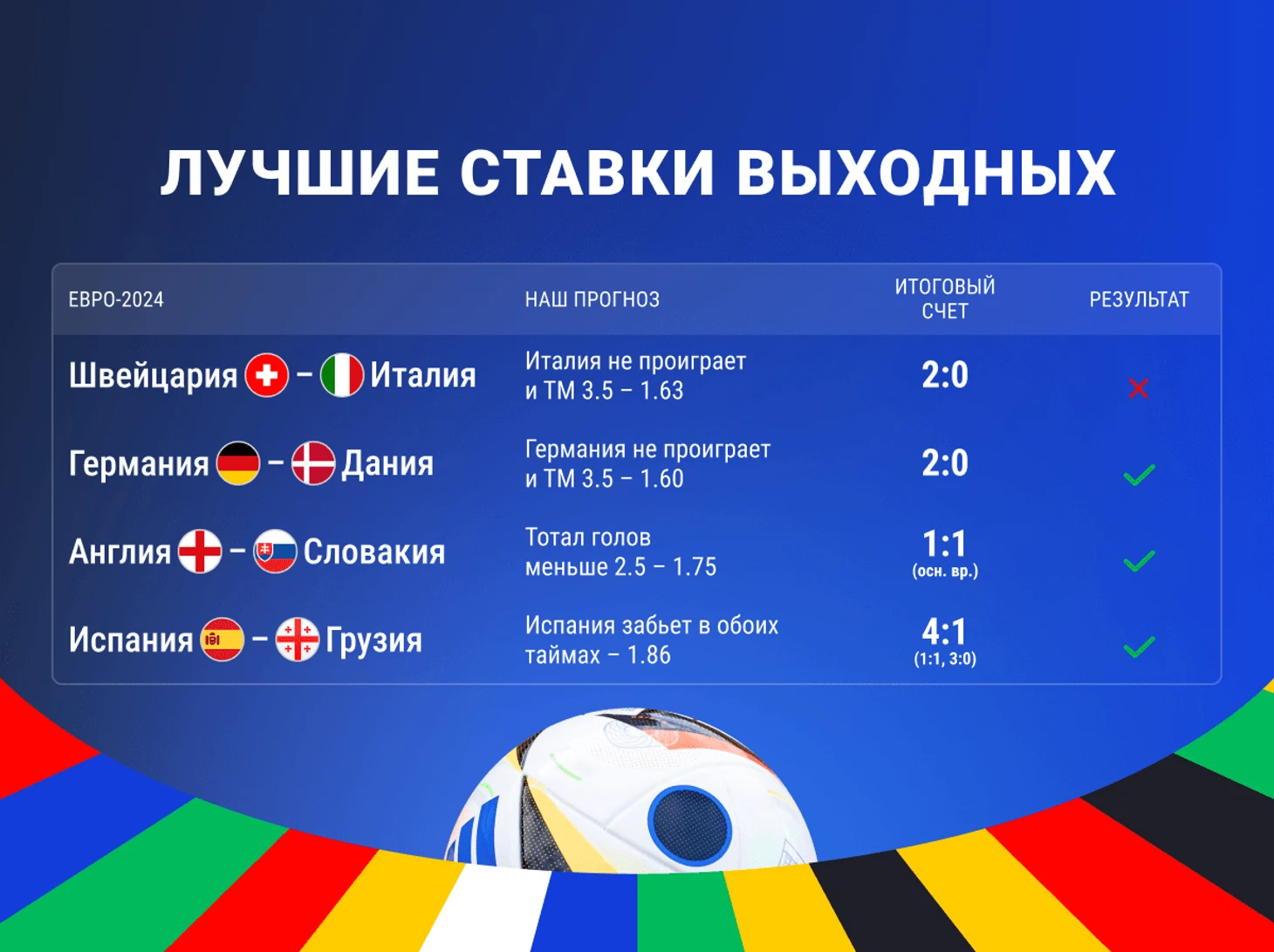 Как старт плей-офф Евро-2024 прошел для Вас? Делитесь своими успешными ставками в комментариях!