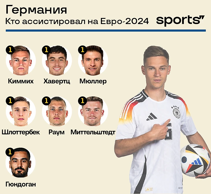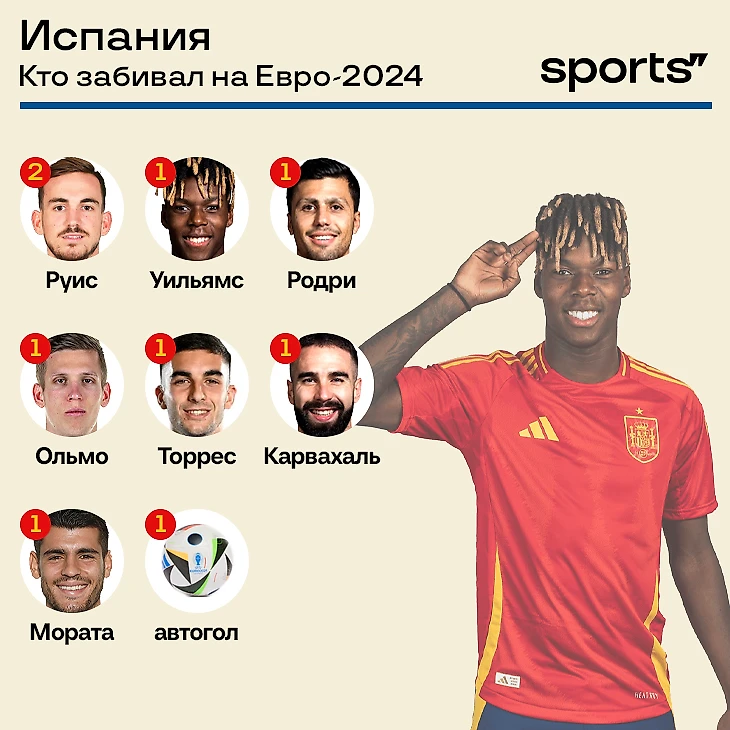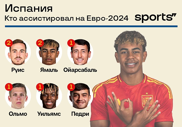 ● У Фабиана Руиса 2+2 – поучаствовал почти в половине голов Испании на турнире. Ямаль тоже хорош – не только ассистами.