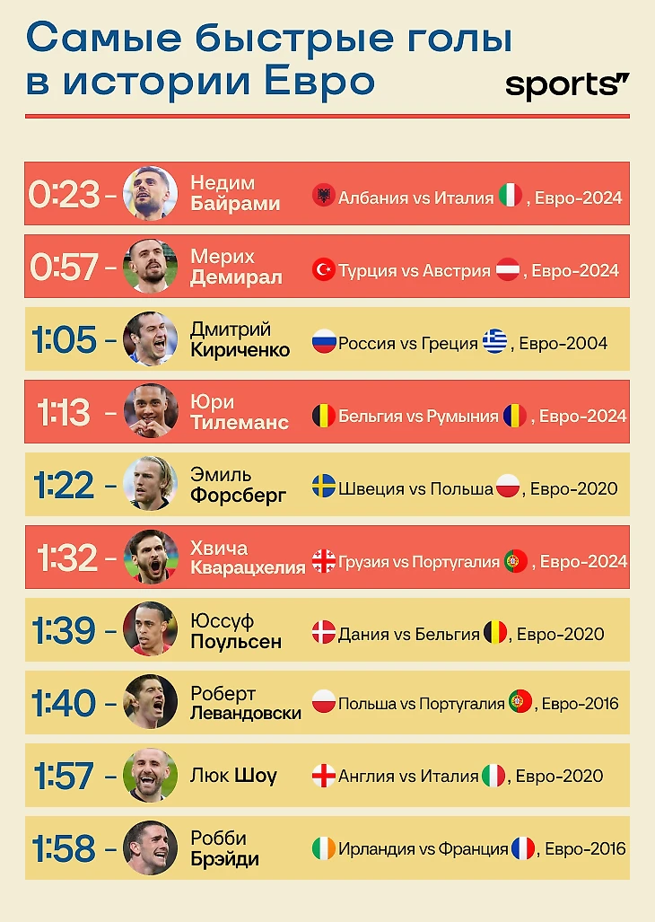 Он забил на 23-й секунде первого матча группы с Италией. Тот мяч – самый быстрый за всю историю Евро, а Демирала – только в плей-офф.