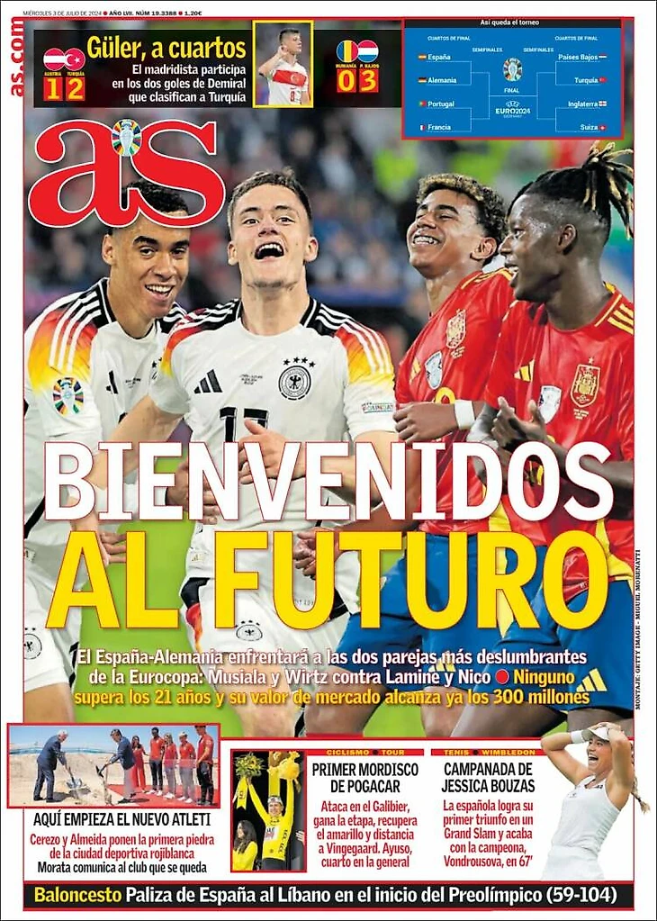 Испания готовится к матчу с Германией и обращает внимание на противостояние молодых звезд – Джамал Мусиала (21) и Флориан Виртц (21) против Ламина Ямаля (16) и Нико Уильямса (21).