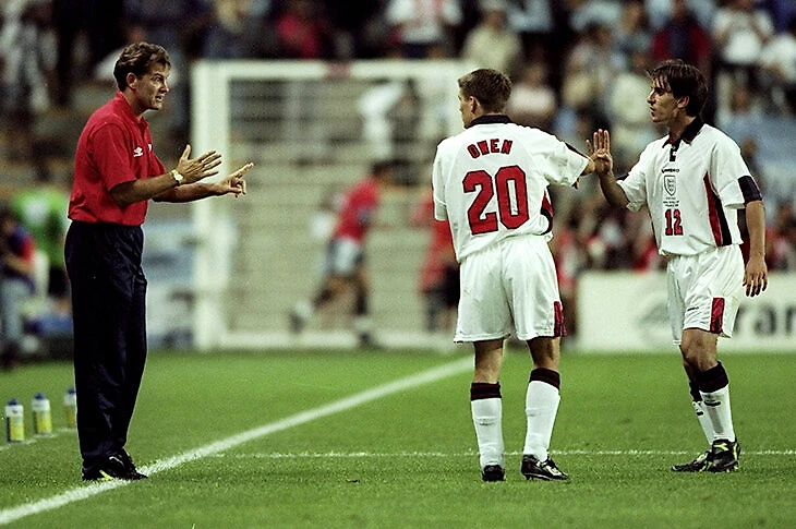Англия-1998 – антипод современной, где играющие в трудный футбол суперзвезды опускаются до статуса солдатов Гарета Саутгейта, что тянет команду в прошлое. Ходдл, наоборот, открывал англичанам дорогу в будущее – не загонял игроков в шаблонные по тем временам английские 4-4-2 и пытался с новой стороны раскрыть каждого.