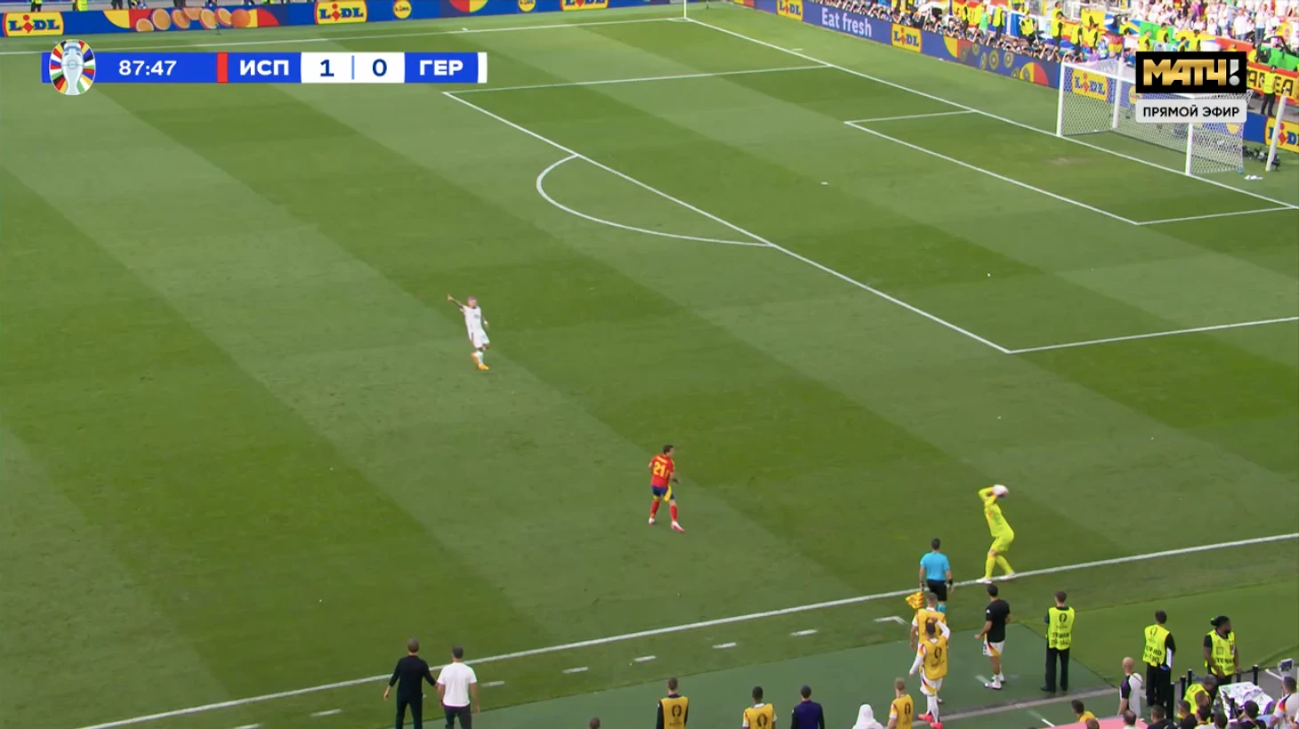 И какой же классный Нойер: вбросил аут перед голевой атакой. Дико своевременно и быстро – Германия сохранила темп и не дала Испании расставиться.
