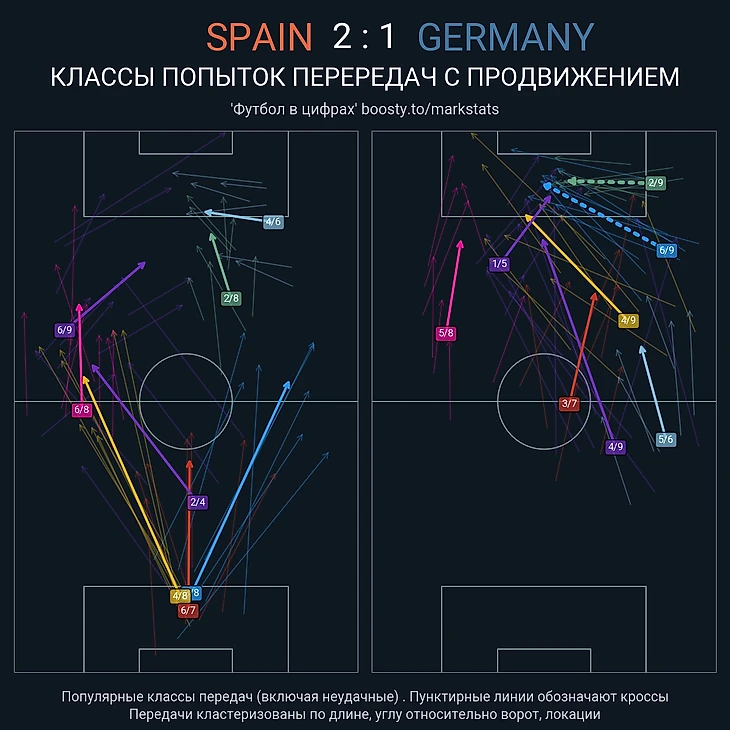 Испания перекрывала центр. Германия чаще задействовала фланги