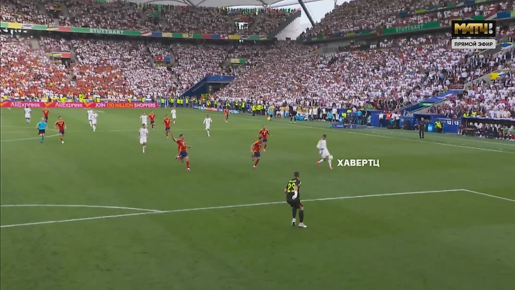 Нагельсманн выпустил Фуллкруга для того, чтобы усилить атаку, соответственно, пошли навесы в штрафную испанцев. И моменты у Германии начали создаваться: штанга Фуллкруга, потом Симон снова ошибся, не отдал передачу на нужную высоту после удара от ворот и вывел Хавертца 1 на 1: