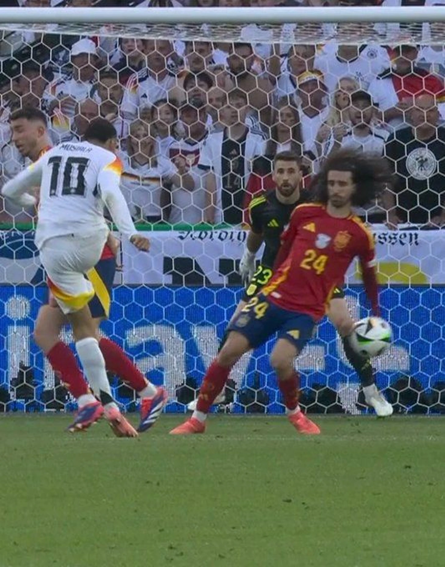 Решение арбитра вполне справедливое, потому что во-первых Кукурелья убирал руку и она двигалась вслед за корпусом, а во-вторых рука естественно увеличивает площадь тела. Испания забила гол на 119 минуте, здесь ситуация похожа на гол Германии. Снова преимущество перед воротами, но здесь просто проигрывается персональная дуэль Рюдигером Мерино.