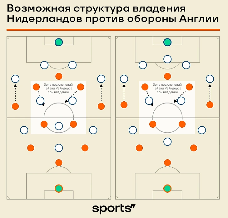 Оба сценария удобны для Нидерландов: Рейндерс и партнеры умеют двигаться через середину, Тейани в состоянии доводить мяч реактивным Коди Гакпо и Думфрису.