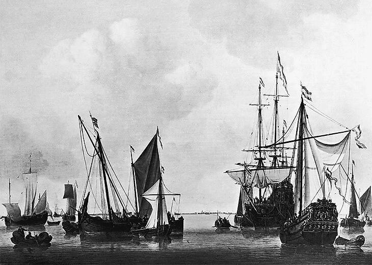 Война была неизбежной, и она началась. Точнее, не одна война: за 22 года с 1654-го по 1676-й Англия трижды объявляла войну Нидерландам. Боевые действия происходили главным образом на море, где англичане, как считалось, имели преимущество. Однако быстро выяснилось, что у голландцев тоже есть мощный военный флот. Голландская Ост-Индская компания строила и военные корабли для охраны торговых караванов. Морские сражения не выявили явного победителя – голландцы в целом были даже успешнее. В 1667-м они даже совершили успешную атаку на базу британского флота в устье Темзы: сожгли многие корабли и отбуксировали в Голландию флагман королевского ВМФ HMS Unity и второй по величине английский корабль Royal Charles.