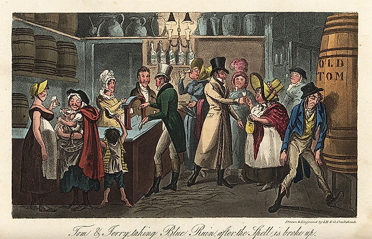 Крепкий джин стал дешевле слабоалкогольного эля: одна порция (драм) стоила всего 1 пенс – и это привело к сумасшествию. Хроникеры описывают ужасающие сцены, которые происходили на улицах Лондона: везде валялись пьяные люди, некоторые умирали от интоксикации, городские канавы заполнялись рвотой и фекалиями, постоянно происходили драки с поножовщиной. Женщины пили не меньше мужчин и отдавались пьяными прямо на улице. Выросла детская смертность, а также число младенцев с врожденными болезнями. Многие производства разорялись, потому что сотрудники пили с утра до вечера.