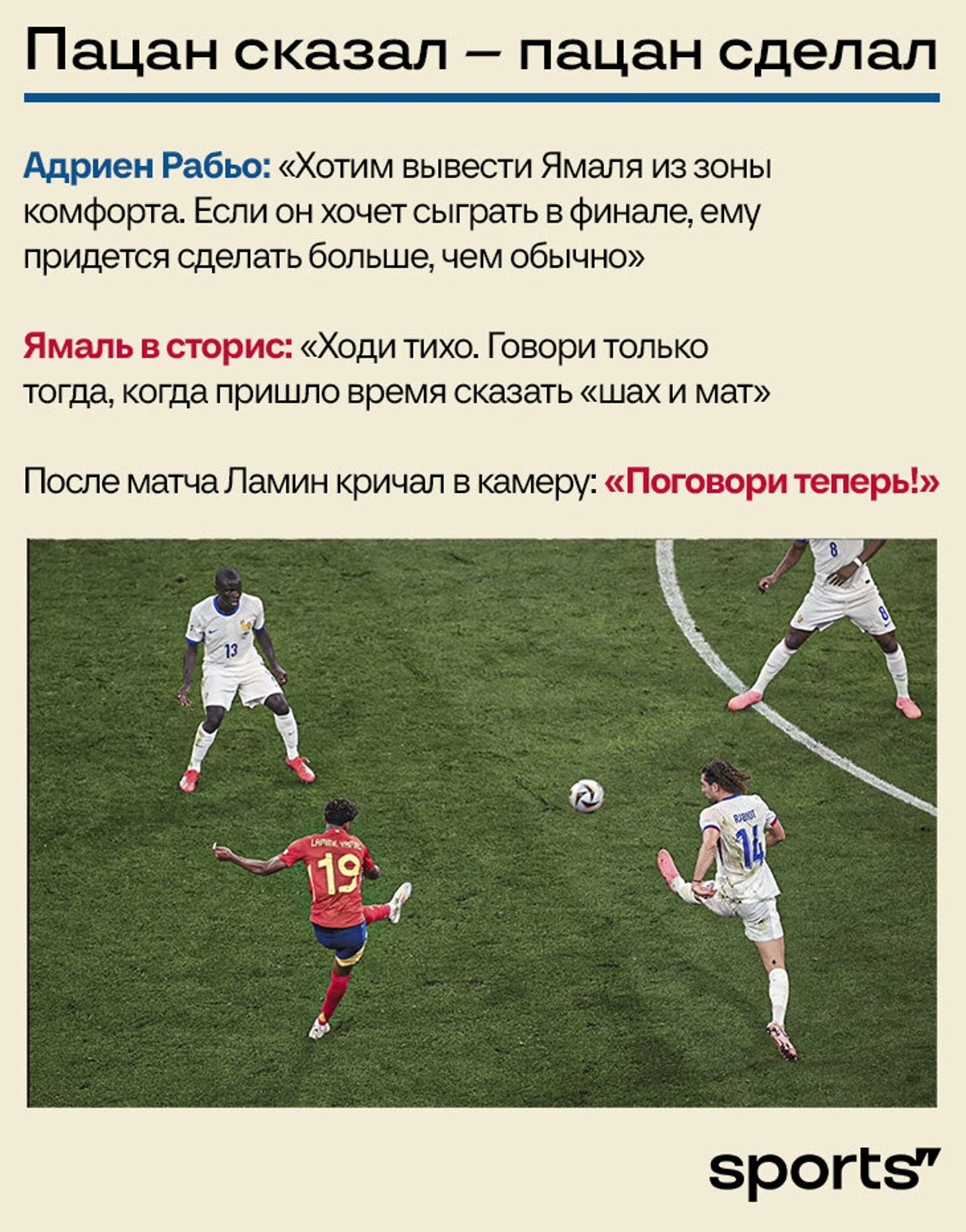 Слова подростка – дерзкий ответ Адриену Рабьо, который задел Ламина перед полуфиналом.
