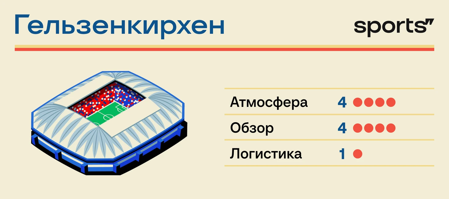 ГЧ. К самому стадиону в Гельзенкирхене нет ни одной претензии. Современный, вертикальные трибуны, гол Беллингема ножницами хорошо виден из любой точки.
