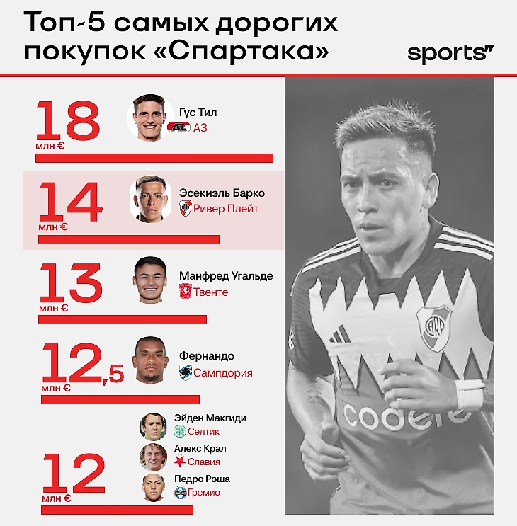 Для «Спартака» – это вторая по стоимости покупка в истории: больше платили только за Гуса Тила (18 млн). Барко обходит трансфер Манфреда Угальде (13 млн), агент которого недавно заявил, что костариканец в «Спартаке» ради денег.