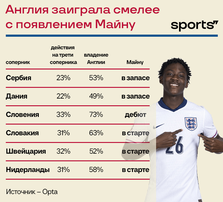 Майну начал Евро в запасе, а с ним старте стиль Англии изменился – она заиграла смелее