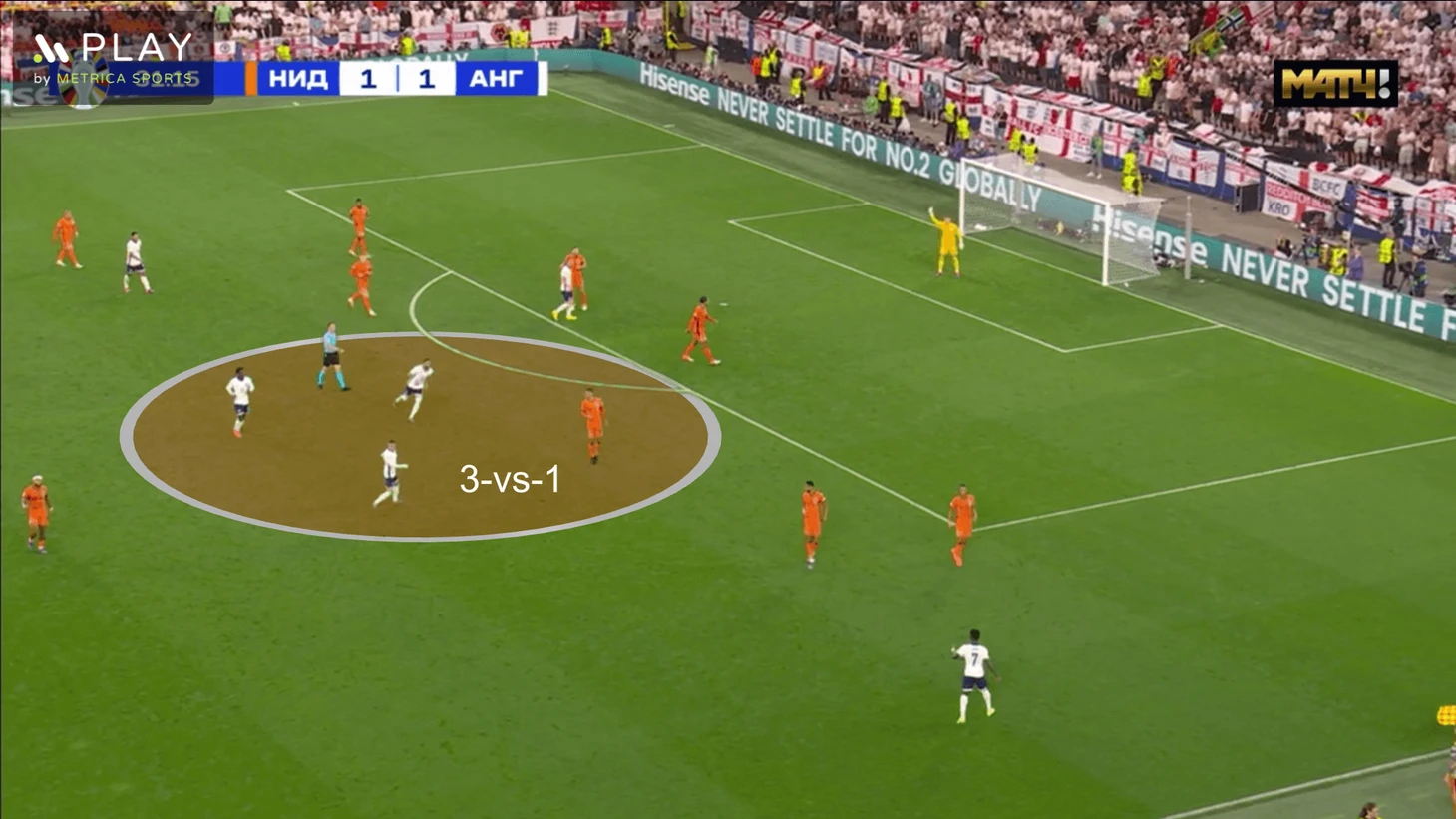 Англия не специализируется на атаках через центр, но в последнем матче уничтожала именно опорную Нидерландов. Вероятно, разобрали и поняли, что именно там болевая точка (такой казалась и перед матчем). Опорную регулярно разрывали через опускания Кейна и открывания Майну.