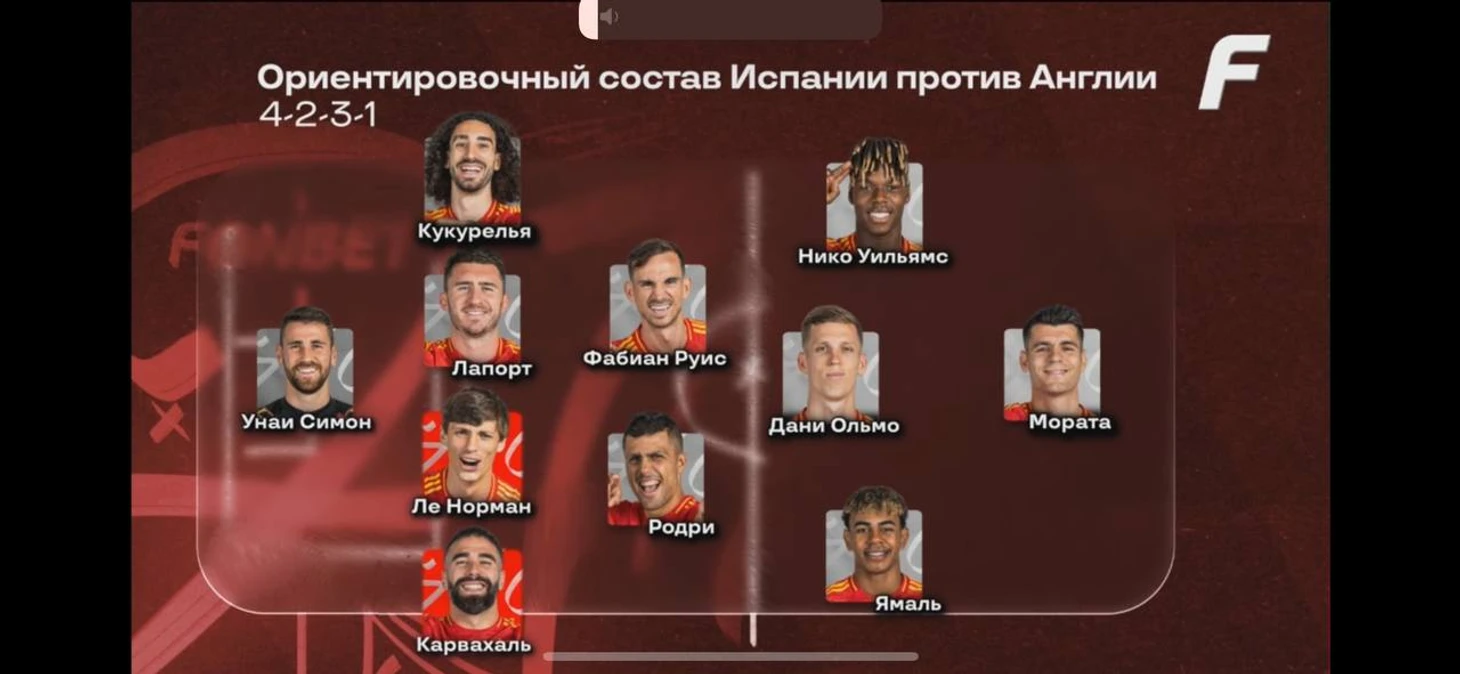 Трио в центре поля Родри-Фабио Руис,Дани Ольмо-лучшие на этом Евро и они должны переиграть центральный кулак англичан-Райс,Майну, Белингем .