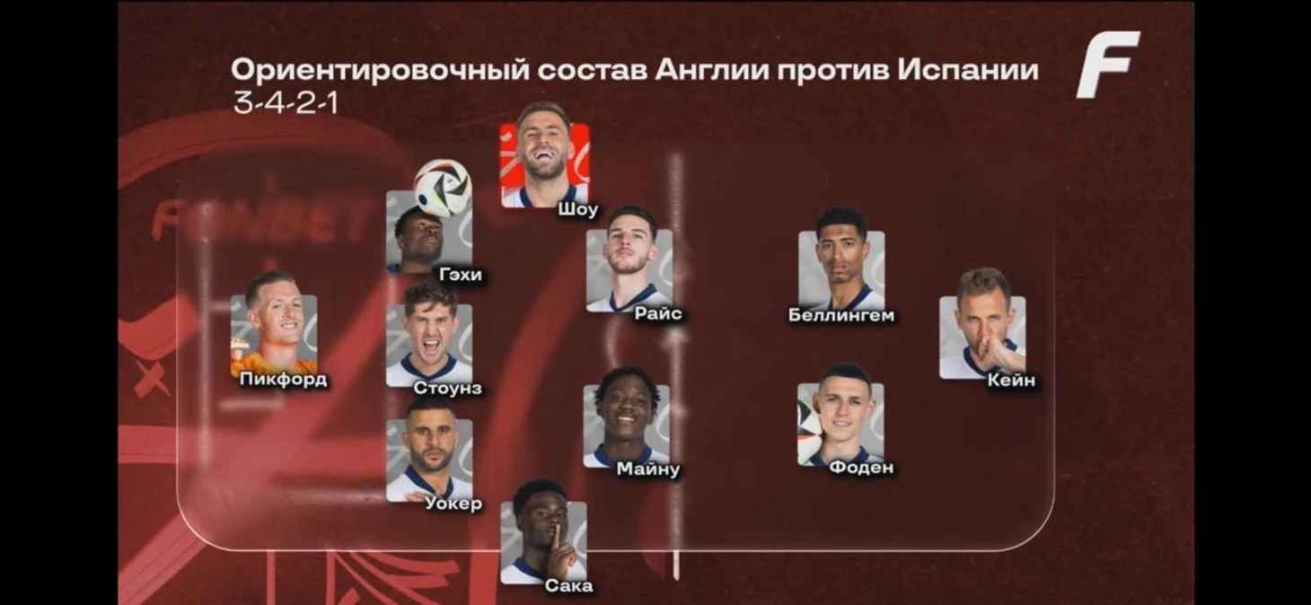 Так и сегодня англичане начнут играть от обороны и их главная задача выдержать натиск испанцев первые 20 минут. Ориентировочный состав нам об этом говорит.Удивляет в нем только Люк Шоу,который не играл весь турнир. Команда Саутгейта будет ждать своего шанса и пытаться завести Испанцев в нудную игру,в которую они играют весь турнир.
