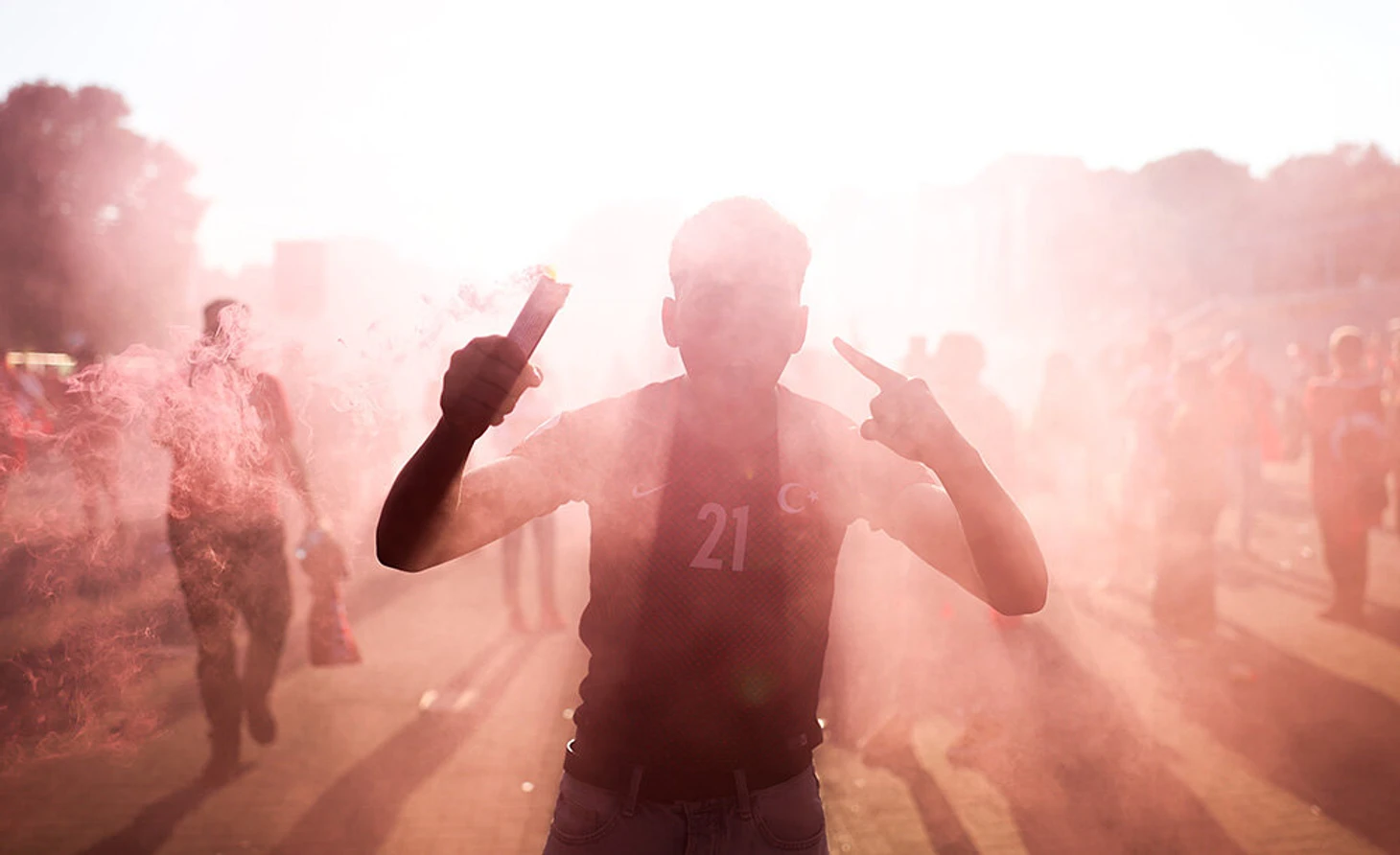 Турция – Чехия. Турецкий фанат зажигает перед игрой.