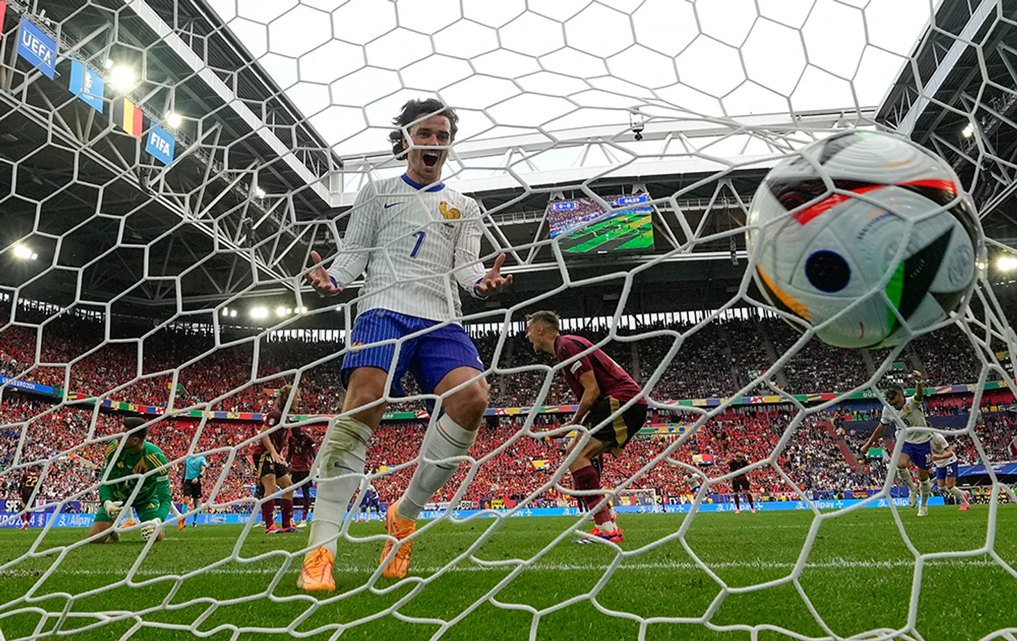 Мяч в сетке. Антуан Гризманн празднует очередной автогол, а бельгийцы разочарованно ищут виновных.